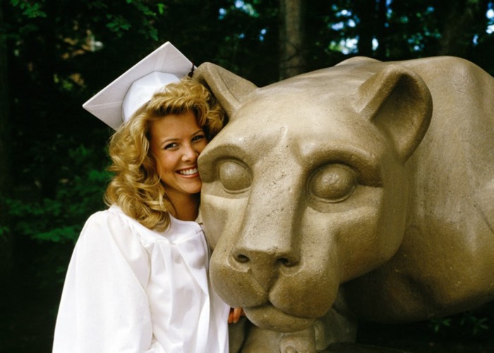 Michelle at her high school graduation. And the Nittany Lion, of course.