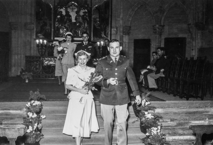Esther Bell & Harry Owen, wedding, 1954.